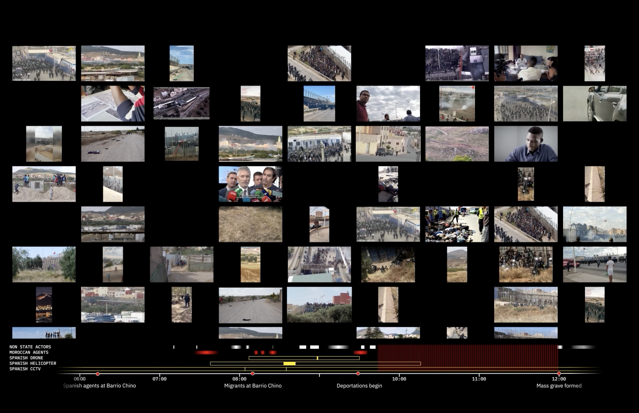 To answer these questions, for more than a year Border Forensics investigated with Irídia-Center for the Defense of Human Rights and the Moroccan Association for Human Rights (AMDH), as well as other civil society actors on both sides of the border. Furthermore, we benefited from the additional advice of the European Center for Constitutional and Human Rights (ECCHR). By articulating our analysis of the massacre across different spatial and temporal scales, we attempted to understand not only the sequence of events and the practices of the actors present on 24 June 2022, but also the structural conditions that made the massacre possible, and the political conjuncture that shaped this extreme intensity of violence. We also analysed the violence that continued after 24 June, through the failure to identify the deceased and the disappeared, the impunity for the massacre, and the judicial harassment against the migrants themselves. Full report available here.